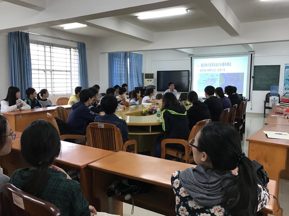 院长张书文在海博楼报告厅为2014级海洋科学专业学生80余人讲授了一堂思想政治理论课。