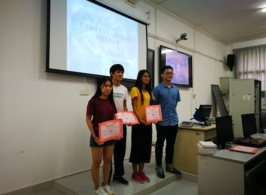 决赛聘请了湛江市气象局观测站高级工程师韦馨丰和廉江市气象局工程师黄允哲两位校外评委。经过激烈角逐,卢泽彬、黄慧仪、刘嘉丽三位同学获得了一等奖,何家泳等七位同学获得二等奖,童建业等十位同学获得三等奖。颁奖结束后,两位校外评委就气象局观测业务及未来趋势为师生做了相关介绍。同学们踊跃提问,反响热烈,激发了同学们的专业学习热情。