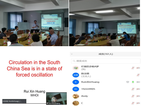 的傅刚教授以及美国伍兹霍尔海洋研究所著名海洋学家黄瑞新教授。会议由分别谢玲玲院长和陈法锦副院长共同主持,论坛采取线上线下同步进行的会议方式,不仅有本院师生积极参加,还有许多外单位人士参加会议,参会人数将近两百人。