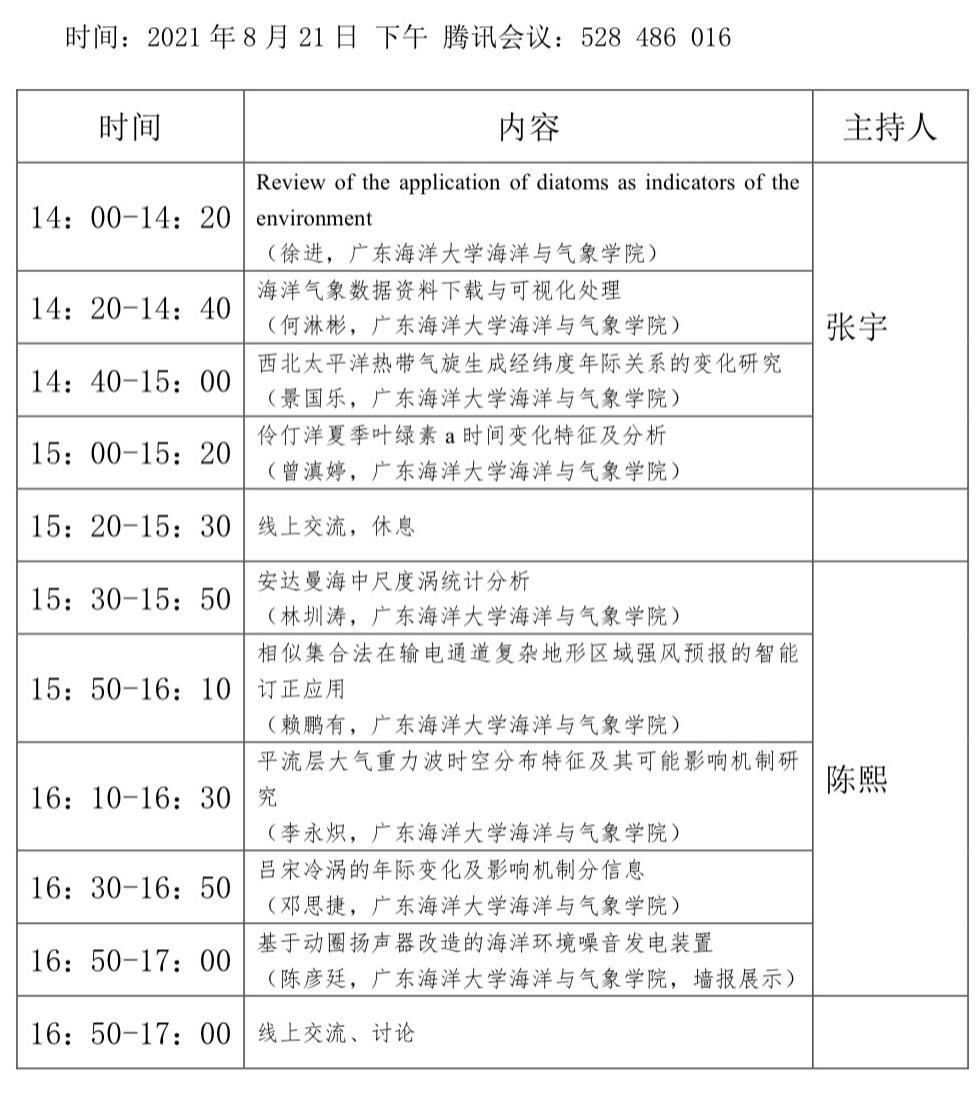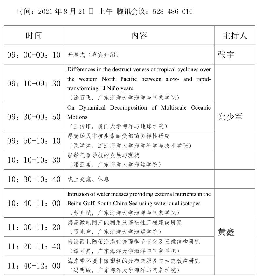 2021年海洋科学青年创新论坛》于早上九点准时开始,参会人员100余人次,其中包括国内外高校及相关科研机构的本科、硕士与博士,以及学术声誉卓越的资深专家出席论坛,所有参会人员就汇报主题展开相关讨论。本次会议聚焦海洋科学相关热点问题,旨在培养青年科学家们发现问题、解决问题的创新精神及实践能力,进而加强学术沟通、学术交流。