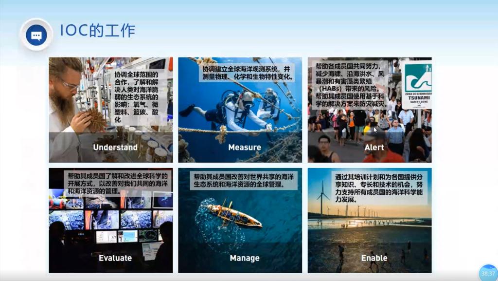 在讲座中,于婷老师向同学们介绍了联合国教科文组织这个机构的组成和服务范围和存在意义、海委会与联合国教科文组织的隶属关系、中国加入其的发展进程以及在现代海洋观测用到的新奇有趣的方法。