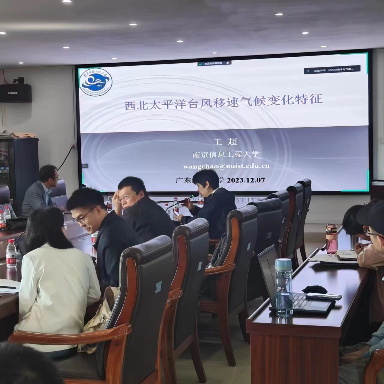 吴立广教授报告题目为:台风精细结构的数值模拟,他通过生动形象的例子深入浅出地讲解了龙卷尺度涡旋、台风眼墙极端上升气流、主雨带对流尺度结构、眼墙极端气压等内容。赵海坤教授报告题目为:热带波动在台风生成中的作用及其季节内预报尝试。他系统地讲解了季节内振荡对台风生成的大尺度调制作用、气候模式中的天气尺度波列、台风生成与热带波动的直接联系以及台风生成中季节内预报的尝试。曹剑教授对过去百年半球尺度季风降水的长期变化以及气温和气溶胶的对降水的影响进行了系统性的介绍。王超教授对西北太平洋台风移速的显著下降趋势进行了深入的探讨,并从引导气流和西北太平洋副热带高压两个方面进行了分析。几位教授同与会师生进行了热烈的学术讨论与交流,详细回答了888娱乐城