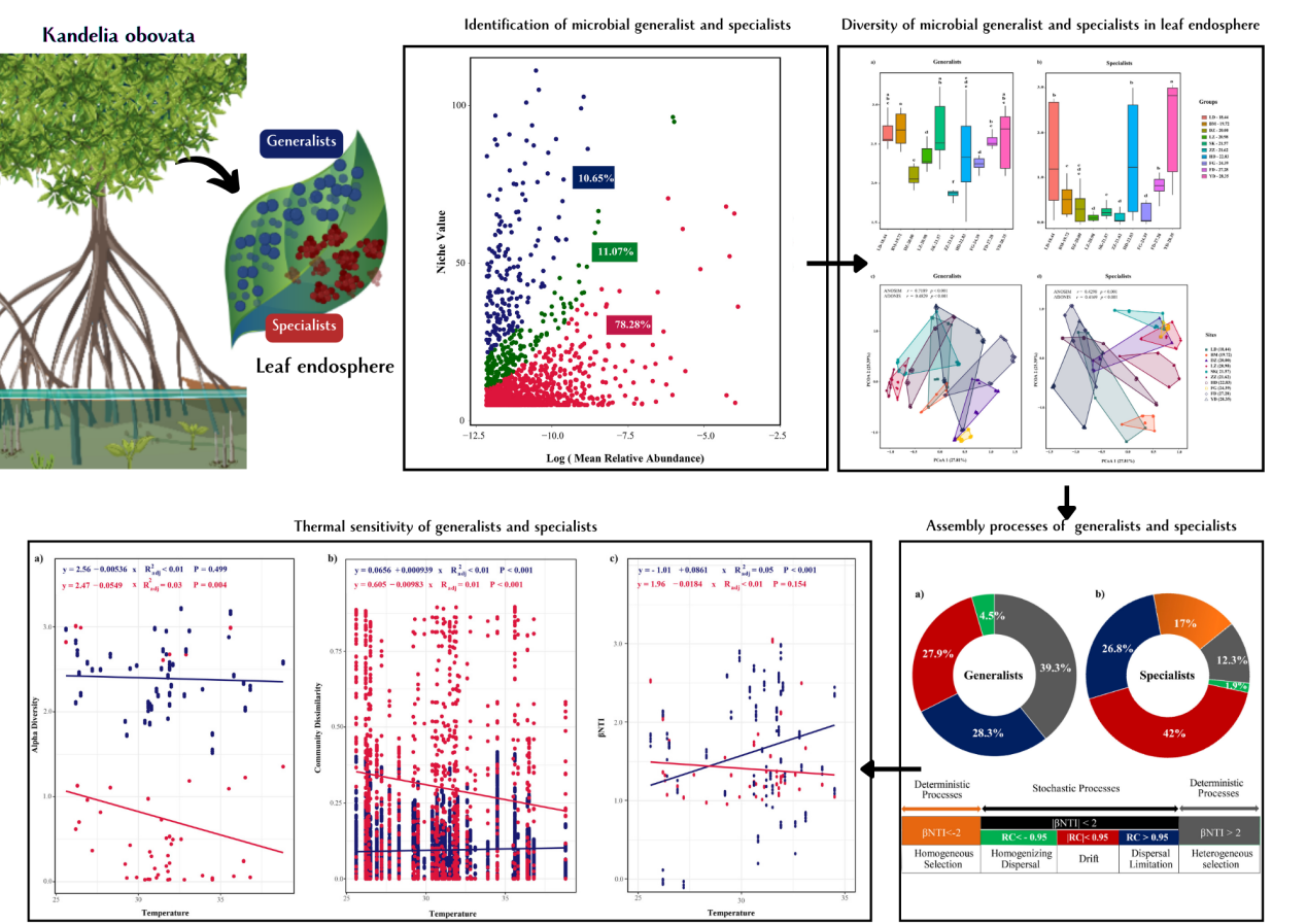 参考文献:(1). Nethmini, R.T., Zhao, H., Pan, L. et al. Thermal sensitivity and niche plasticity of generalist and specialist leaf-endophytic bacteria in Mangrove Kandelia obovata. Commun Biol 8, 5 (2025). //doi.org/10.1038/s42003-024-07446-1