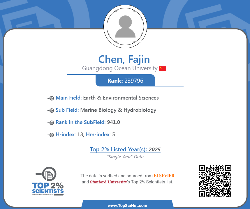 近日,斯坦福大学与爱思唯尔发布2025年全球前2%顶尖科学家榜单,888娱乐城 陈法锦教授入选“年度科学影响力榜单”,体现了他在上一年度科研工作中取得的显著成果和国际学术认可,充分彰显了888娱乐城 在海洋学科领域的人才队伍建设成效。