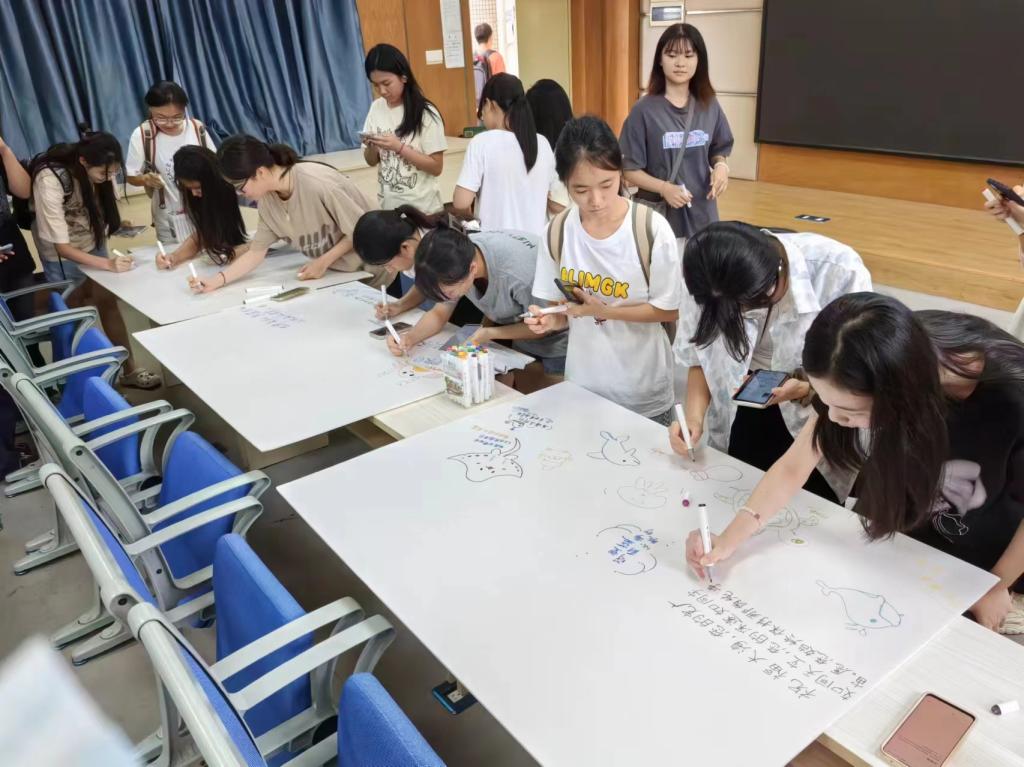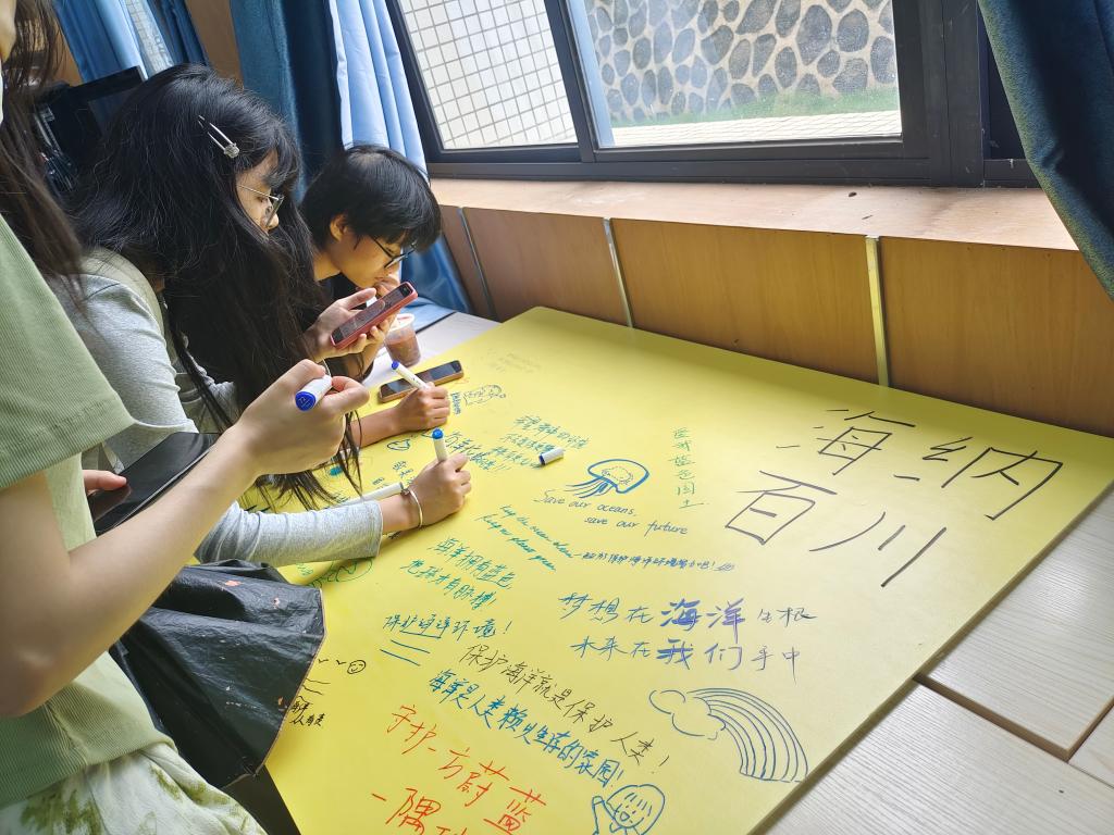 在五彩斑斓的许愿板上,学生们用心写满了对海洋的深深祝福和美好愿景,写下自己对海洋的热爱与保护海洋的承诺。“海洋许愿墙”吸引了众多师生参与,促进了校园文化建设,增强了师生的环保意识。
