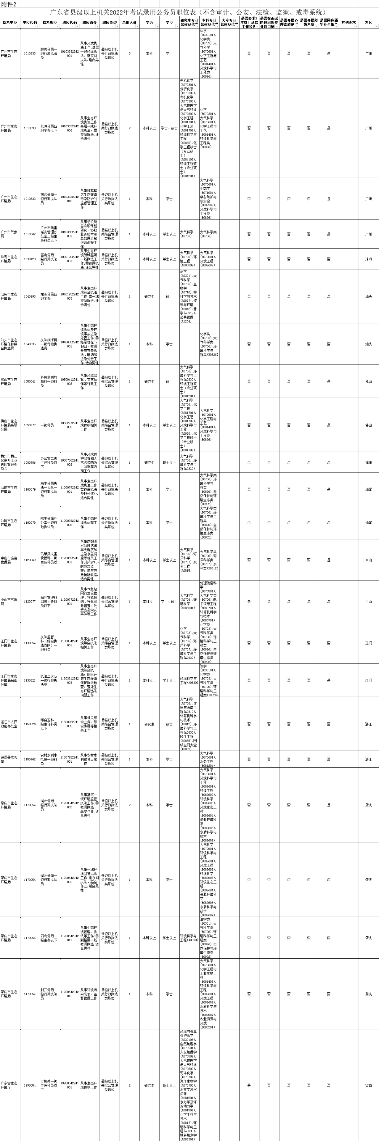 ;      2.广东省县级以上机关和珠三角地区乡镇机关2022年考试录用公务员职位表