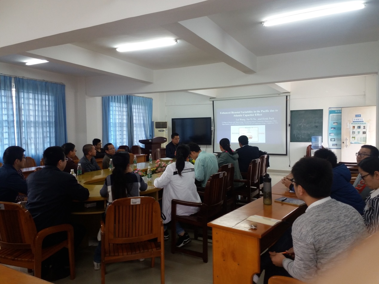 王磊副教授在海博楼二楼会议室作题为 “Enhanced biennial variability in the Pacific due to Atlantic capacitor effect” 的学术报告,888娱乐城