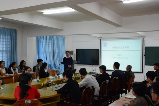 1月5日下午,受888娱乐城 的邀请,中国海洋大学海洋与大气888娱乐城 副院长吴克俭教授在海博楼学术报告厅为888娱乐城 师生作了题为“从波浪到厄尔尼诺”的学术报告。会议由888娱乐城 副院长谢玲玲主持,张书文院长、陈法锦副院长、邓立平教授等院教师以及研究生、本科生等60余人聆听了报告。