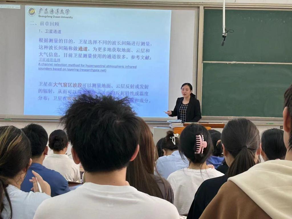 第11届教学质量优秀奖获得者——常舒捷老师主讲,内容为专业基础课——《卫星气象学》,授课内容为“气象卫星图像的分析基础”。常老师通过开展课程回顾方法回顾了卫星通道、吸收带和大气窗,引导学生对可见光卫星云图、红外云图、水汽图的相关知识,同时,紧密联系生活实践,利用例证法进而说明三种卫星图像的区别与联系。通过讲解发生于今年的有气象记录以来全球最长寿的热带气旋“弗雷迪”相关的卫星云图使本来非常难于记忆与枯燥的知识点变得浅显易懂;此外,巧妙设置问题,引起学生思考,激发学习兴趣。