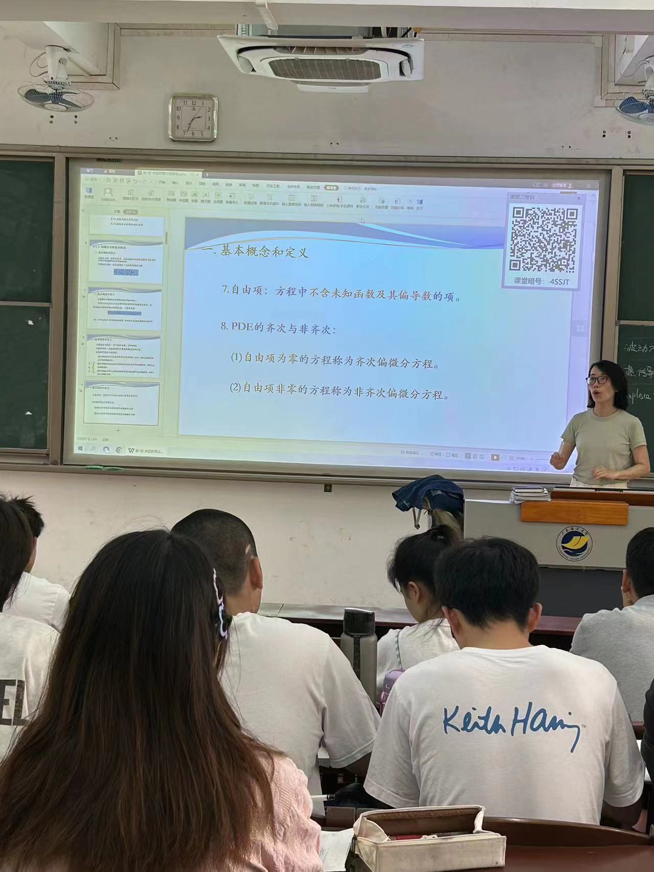 第14届教学质量优秀奖获得者—— 于杰老师主讲,讲授课程为专业基础课--《数学物理方法》,授课内容为“偏微分方程的概念及波动方程的推导”。于老师充分运用了问题导入式、启发式和案例式等教学方式,详细讲解了“偏微分方程的阶、线性与非线性、齐次与非齐次的定义和概念”以及“由一维弹性弦的自由振动如何推导波动方程”等知识点;同时,将思政内容融入教学过程中,激发学生学习兴趣;并借助雨课堂等授课平台和资源,激发学生的学习兴趣,提高课堂的教学效果,有效展示了线下、线上混合教学模式,并在课程成绩评价中,充分结合到过程学习的重要性进行评价。