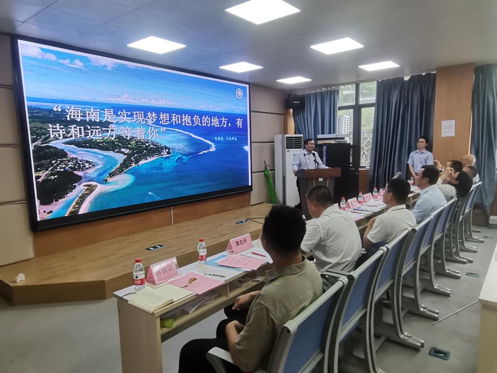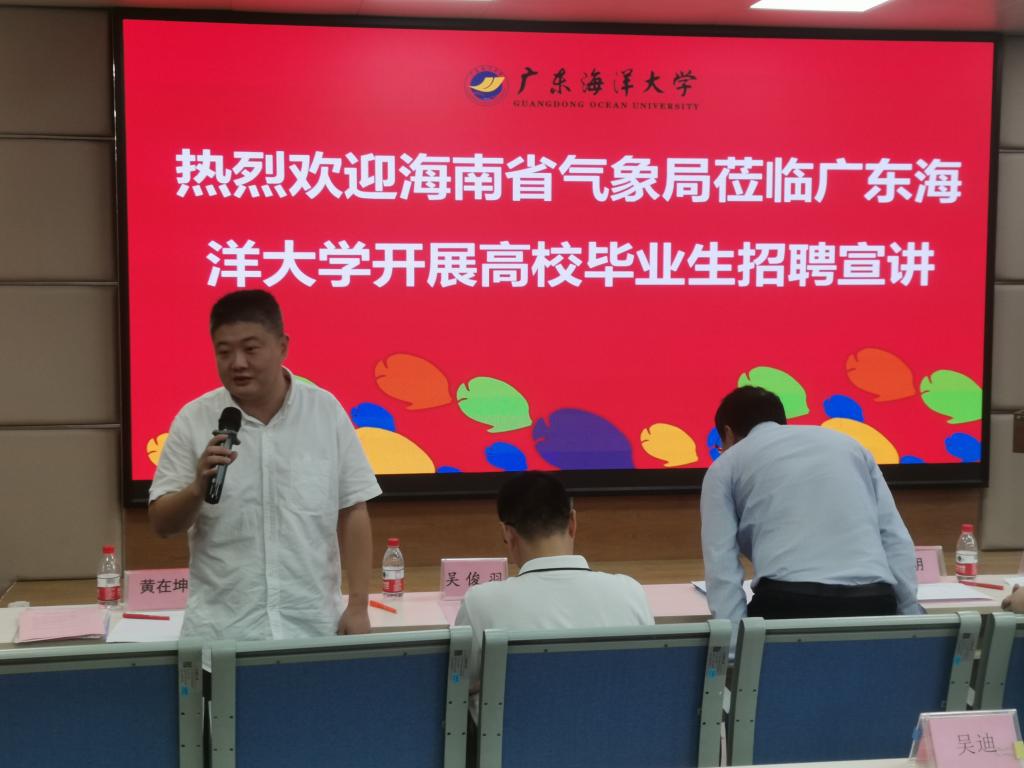 蔡亲波副局长介绍了海南省气象局和2024年人才招聘政策、发展前景、薪酬待遇、岗位要求、招聘程序等情况,诚意邀请同学们加入海南省气象局这个大家庭。