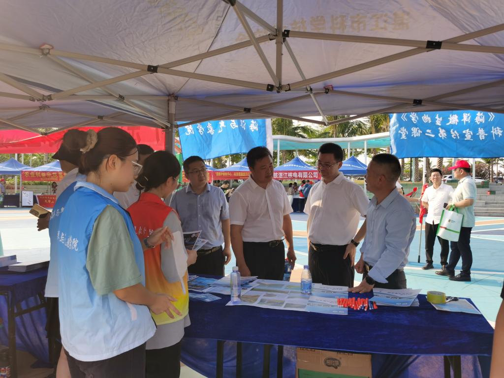 设置的摊位前吸引了不少前来参加活动的人们,他们驻足观看,对“蓝眼泪”、看云识天气、湖光岩地质等知识十分感兴趣,林海峰老师带领同学们对他们提出的问题一一解答,并发放宣传资料。湛江市科协主席郭荣波等市领导对888娱乐城