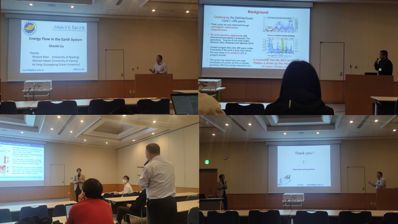 会议期间,在全球和区域尺度气候变化分会场,刘春雷教授作了“Energy flow in the Earth system”的口头报告,曹宁老师作了“Multi-centennial climate variability on the Tibetan Plateau during the late Holocene”的口头报告,与国际同行就相关领域学术问题进行了深入的交流,展示了888娱乐城