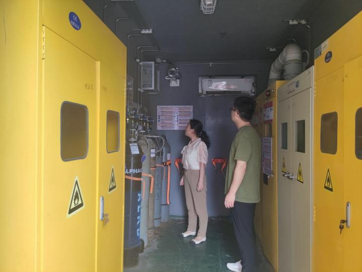 所有实验室展开细致排查。此次检查聚焦仪器设备运行、消防设施配备、危险化学品管理、水电安全及气瓶室等重点区域,深入核查实验室安全责任落实、设备维护记录、危化品台账与应急处置措施等关键环节,旨在全面查找安全隐患,确保不留死角。