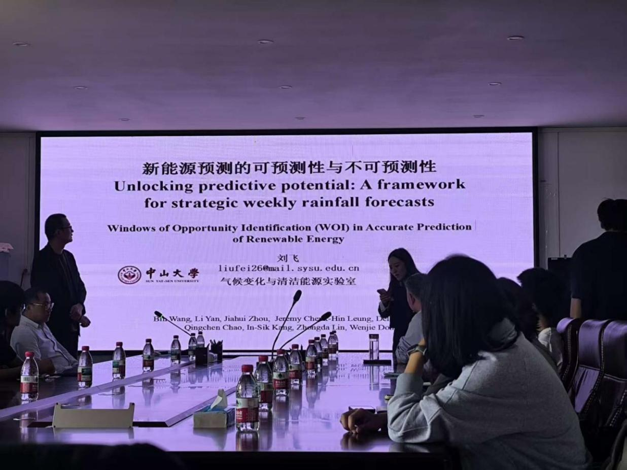刘飞教授首先从新能源与石化能源的对比与互补关系切入,系统阐述了气象科学在新能源领域的应用价值,重点讲解了气象数据如何为能源系统稳定性提供保障,以及如何将预测产品应用于新能源技术的优化与服务。此外,他还结合近年来在气候变化与清洁能源方面的科普实践,分享了开展公众科学传播的经验与创新思路,为888娱乐城