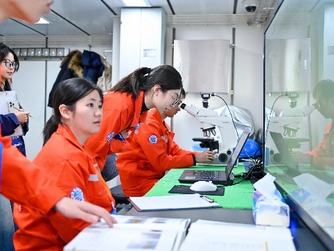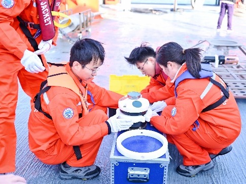 总决赛期间,代表队登上6000吨级“东方红3”科考船,与来自中国海洋大学、厦门大学、中山大学、河海大学等全国10支参赛队伍同台竞技。本次大赛涵盖物理海洋、海洋化学、海洋生物和海洋地质四大方向,设置甲板和船上实验室两个考核板块。甲板操作包括SBE911plus CTD观测及采水、化学水样现场分取、箱式采泥器表层沉积物取样、浮游生物垂直拖网以及海床基组装等5项内容;实验室内考核包括海水pH测定、浮游植物鉴定(种水平)、表层沉积物描述及船载观测仪器认知共4项内容。考核内容兼顾实践与理论,覆盖面广、工作量大、操作要求高,且需在5.5小时内完成全部项目;同时受当日4级海况影响,整体难度进一步加大。888娱乐城