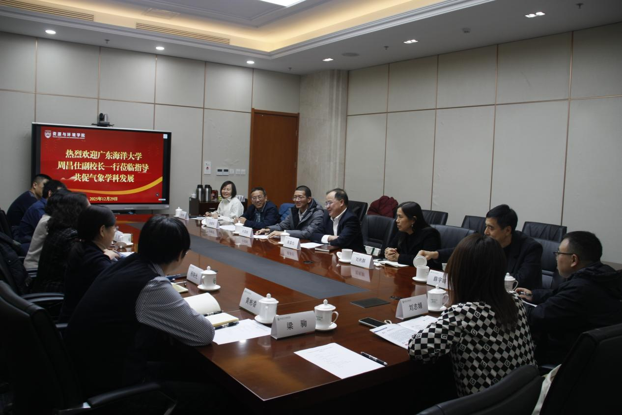 气象学科的高质量发展。两校相关院系负责人分别介绍了学科发展历程、师资队伍建设、科研平台运行及国际合作情况。双方围绕新时代气象人才培养模式、跨学科课程体系建设、重大科研项目联合申报、青年学者交流机制等进行了深入探讨,一致同意将在优势领域加强互动,积极探索在海洋气象、农业气象、气候与环境等方向开展实质性合作,共同服务国家战略与区域经济社会发展。
