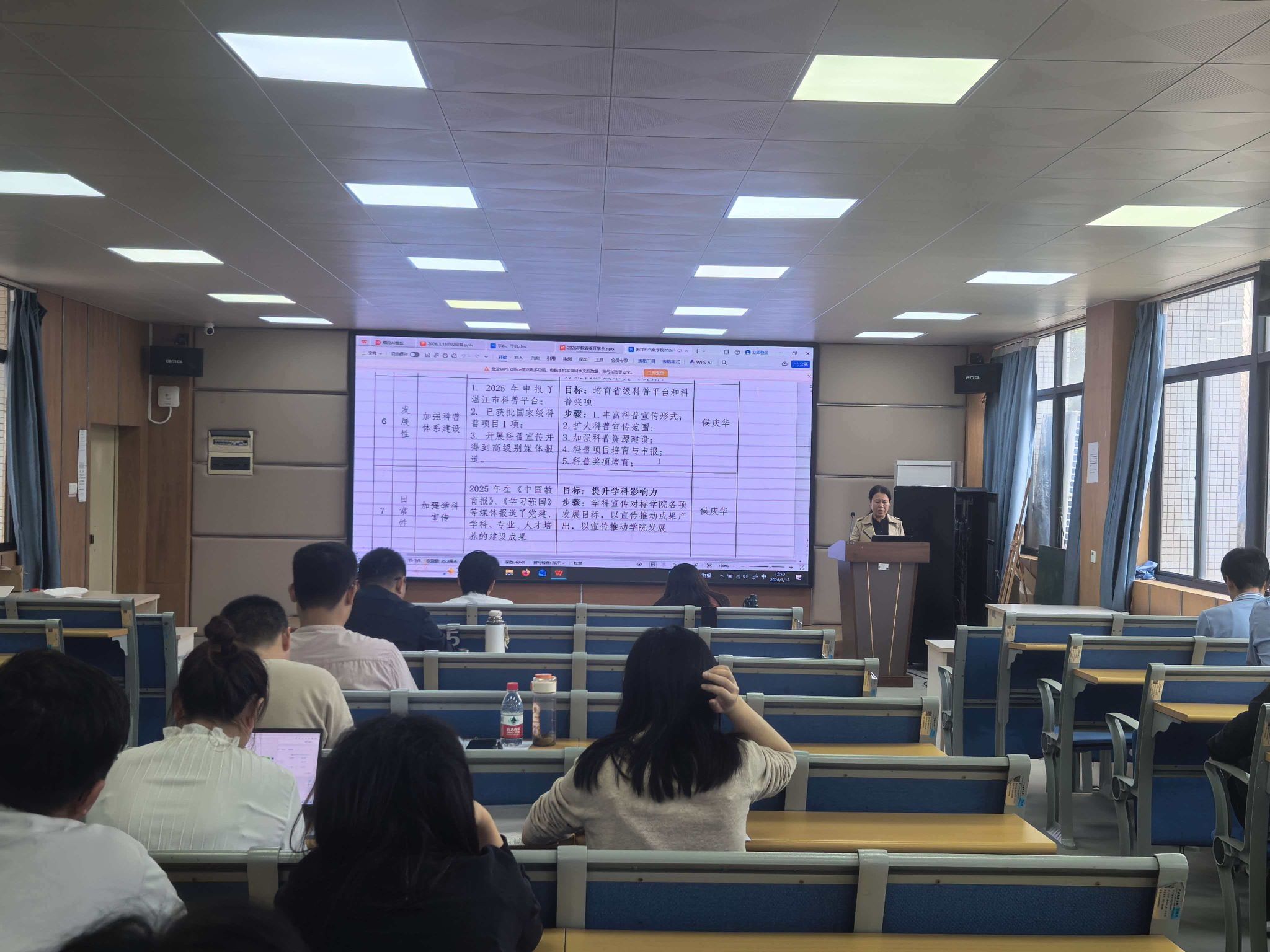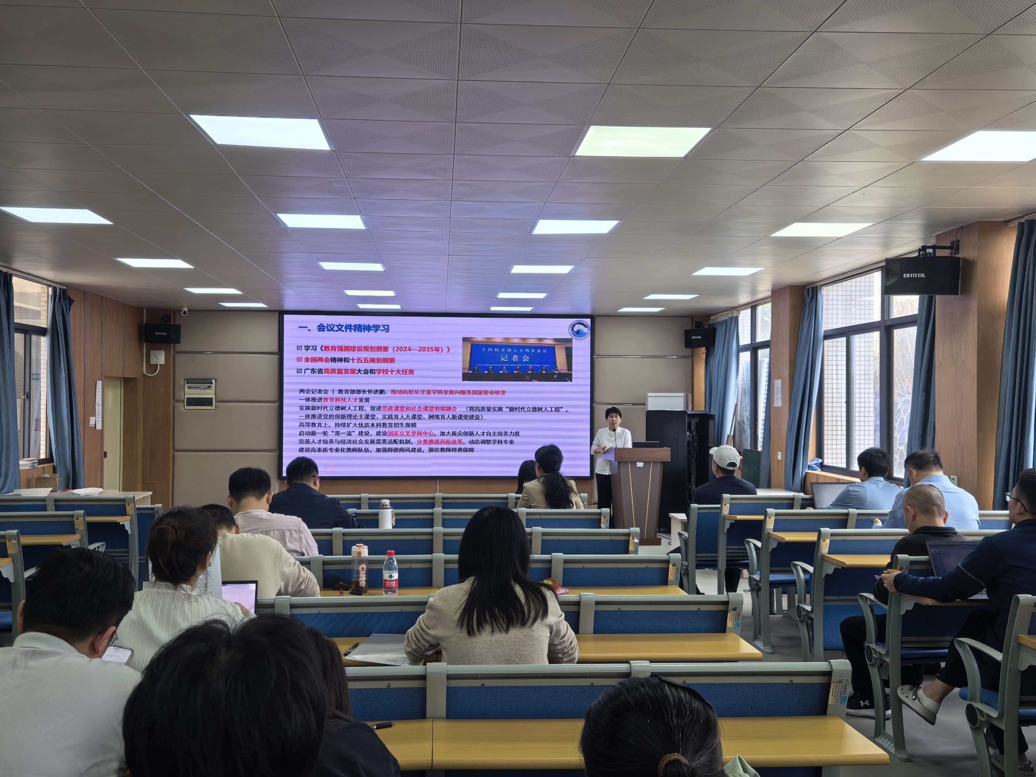 随后,各分管领导结合年度工作要点作具体部署。薛宇峰副院长就本科生教育教学改革、课程建设、教学成果培育等提出要求;侯庆华副院长对学科建设、实验室建设等工作作安排;胡森林副书记围绕学生思想政治教育、日常管理及科普宣传工作进行部署。