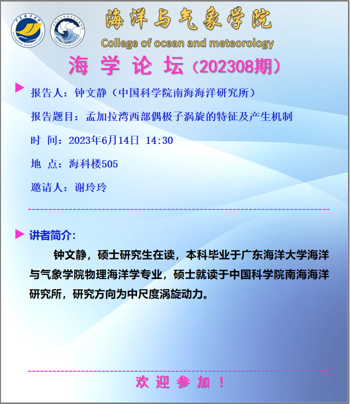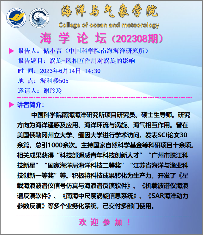 【学术会议通知】888娱乐城 “海学论坛”(202308期)