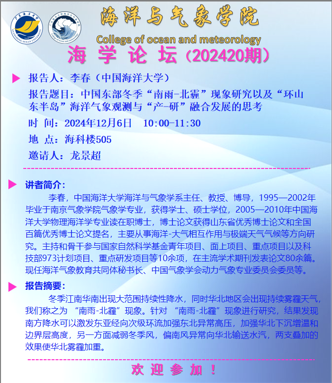 【学术会议通知】888娱乐城 “海学论坛”(202420期)