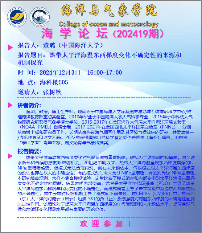 【学术会议通知】888娱乐城 “海学论坛”(202419期)