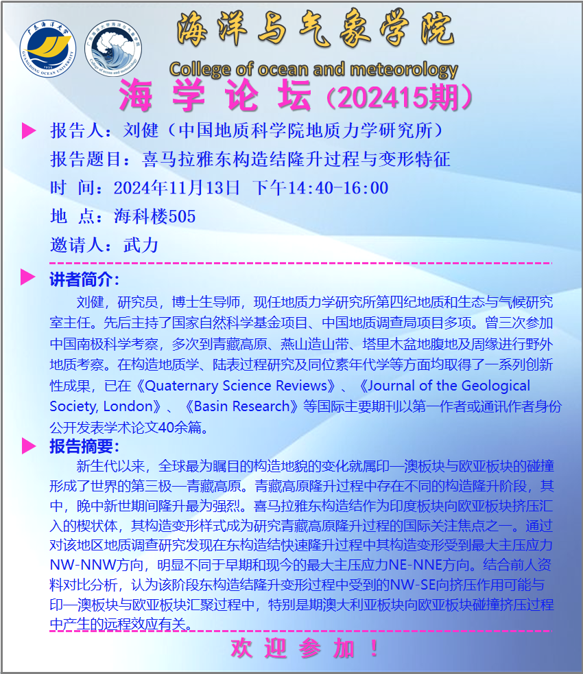 【学术会议通知】888娱乐城 “海学论坛”(202415期)