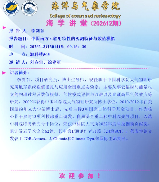 【学术会议通知】888娱乐城 “海学讲堂”(202612期)