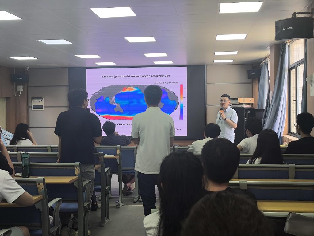 的老师和学生就古海洋学放射性碳同位素测年如何进行区域碳库校正等问题进行了深入的交流和讨论。