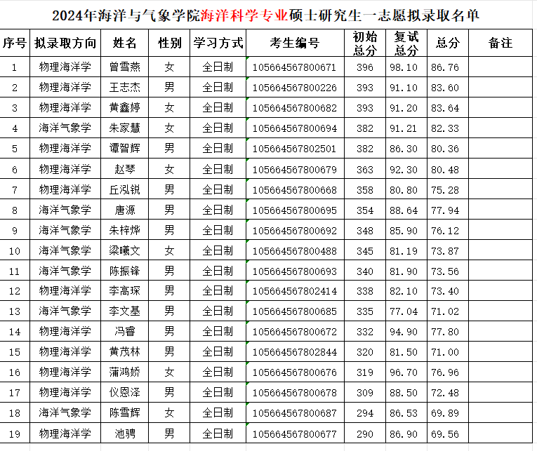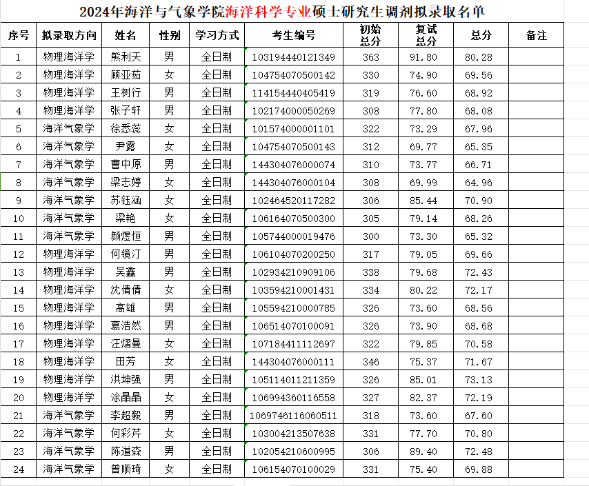 现将888娱乐城 海洋科学专业2024年硕士研究生一志愿及调剂拟录取学生名单予以公示,公示期为3个工作日,即4月26日-4月28日。公示期内如对结果有异议,可以书面形式向888娱乐城 予以提出。
