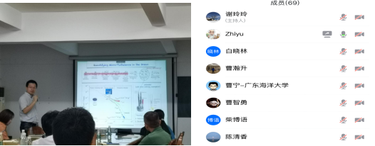 2020年9月9日,厦门大学刘志宇教授到访并以“低纬度大洋的跃层混合”为题,通俗易懂地引出海洋中的湍流现象、湍流运动对于整个大洋环流和气候系统的意义、以及海洋湍流研究的发展过程。报告系统地阐述了海洋小尺度湍流的可能产生过程、能量传递方式与耗散影响机制,分析了海洋湍流的观测历史与目前国际海洋学中湍流混合的观测方法与估算方案,概况总结了目前国际上湍流混合研究的前沿进展;提出基于低纬度大洋由于惯性频率较低、能量串级速率慢,因此导致现有的基于内波过程发展出的细结构参数化方案对低纬度大洋混合率的高估问题。着重介绍了低纬度太平洋温跃层内实际观测到的混合率低于深海大洋1个量级的现象及其物理机制,提出了现有的参数化方案估算结果偏高的问题,展示了基于剪切不稳定提出的新的参数化方案;并探讨了目前海洋湍流研究领域存在的问题和今后的研究方向。