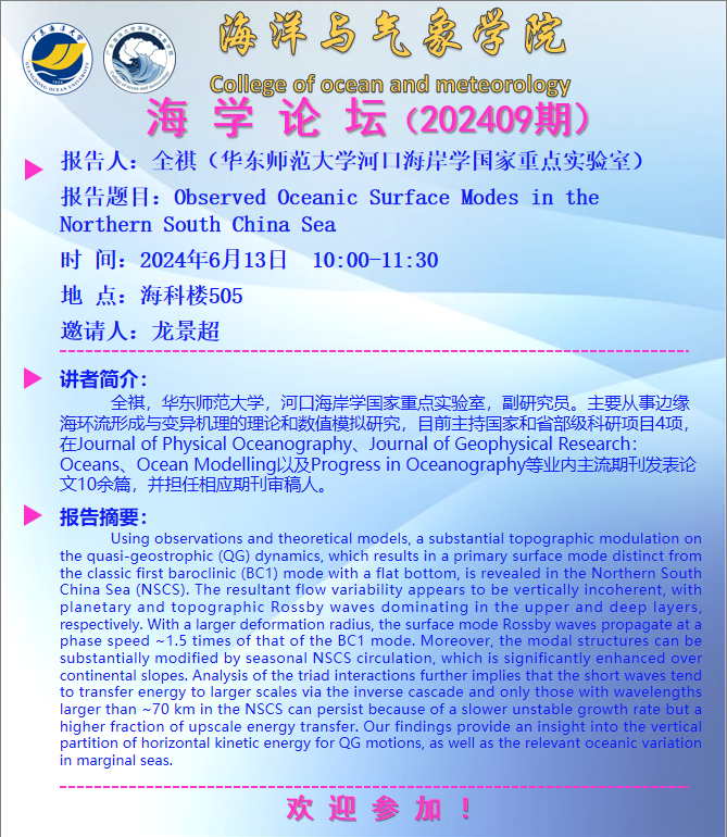 【学术会议通知】888娱乐城 “海学论坛”(202408期)