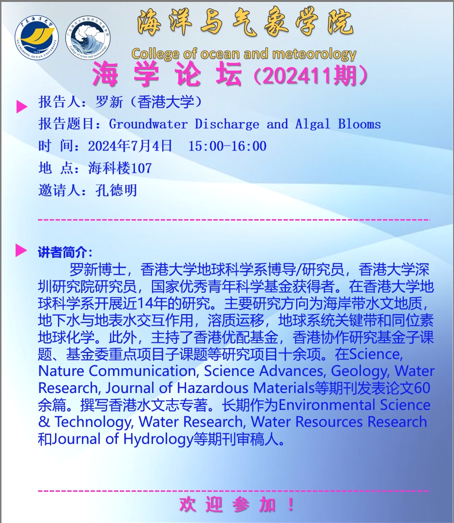 【学术会议通知】888娱乐城 “海学论坛”(202410期)