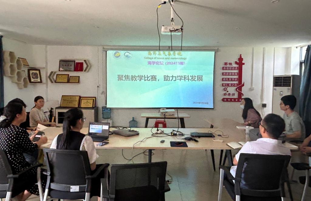 举行了2024年第13期海学论坛,本次论坛邀请到入围广东省第七届高校(本科)青年教师教学大赛决赛的本院青年教师宁浩,在海科楼313会议室与大家展开以“聚焦教学比赛,助力学科发展”的教学研讨。研讨由888娱乐城