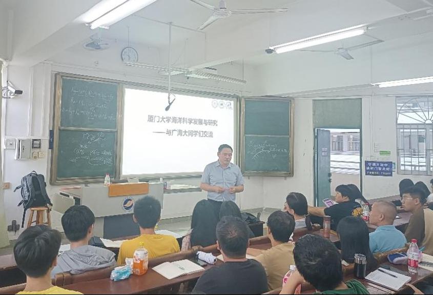 副院长陈法锦教授主讲的本科生课程《海洋生物地球化学》,接着,蔡教授结合课程教学大纲内容,做了主题授课。在课堂上,蔡教授从地球系统科学的角度介绍了海洋环境污染问题的本质,深化同学们对海洋生物地球化学的认识,增强了同学们利用地球科学系统的思维去研究海洋问题的能力。最后,还与同学们积极互动,引导大家深入思考。通过蔡教授的指导,888娱乐城