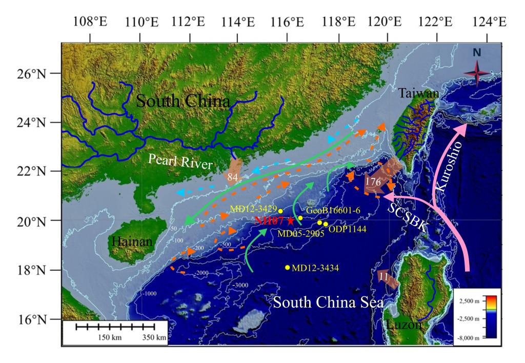 南海是西北太平洋最大的边缘海,其水文特征受大陆和大洋的共同影响,海陆相互作用强烈、物质循环活跃、且海洋动力过程复杂,是研究海陆相互作用和沉积物源–汇过程的重要区域。黑潮是西北太平洋最强的西边界流,当其北上经过吕宋海峡时,由于失去岸界的阻挡向西弯曲入侵南海,向南海输送大量的热量和水汽,同时对南海北部的沉积动力和物质输运产生重要影响。现代观测和模拟结果表明黑潮入侵南海的强度和路径存在年代际和季节性变化,然而地质历史时期黑潮入侵南海的演化历史及其控制机制的认识知之甚少,黑潮入侵对沉积物源汇过程的影响仍然缺乏深入研究。