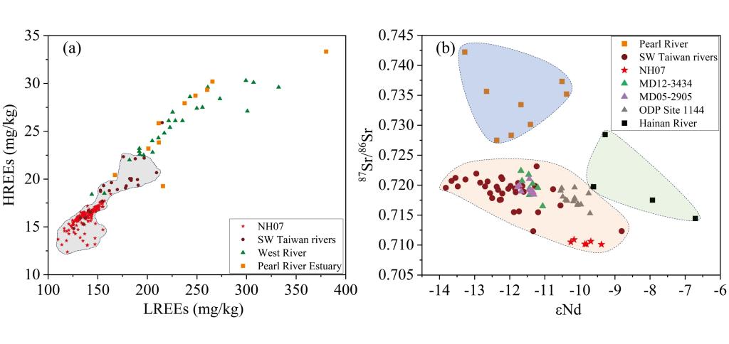 888娱乐城 海洋地质团队成员黄超副教授以南海北部陆坡的NH07岩心为研究对象(图1),通过高分辨率的地球化学和粒度分析,重建末次冰消期以来南海北部陆坡沉积物的源–汇过程,并探讨其对气候变化和黑潮入侵南海的响应机制。稀土元素和Sr–Nd同位素分析表明,台湾西南部河流是NH07岩心沉积物的主要来源(图2)。粒度敏感组分分析发现,敏感粒度组分2(24.7–27.9 μm)可以用于示踪黑潮入侵南海的可靠指标,从而重建了末次冰消期以来黑潮入侵南海的演化历史。研究结果表明,黑潮入侵南海北部的强度与开放太平洋黑潮主轴的强度呈现反相关关系,主要受东亚季风和ENSO活动的调控(图3)。在末次冰消期(16, 000–11, 700 cal yr BP),黑潮入侵南海北部的强度较大,沉积物来源和输运主要受海平面变化与黑潮入侵强度的共同驱动,而化学风化强度主要受控于低海平面暴露的陆架物质再风化作用影响;全新世时期(11, 700 cal yr BP–至今),黑潮入侵南海北部的强度整体较弱,东亚夏季风成为控制陆源物质输运和化学风化强度的主要因素。该研究深化了对边缘海沉积系统响应季风气候演变、海平面变化和海洋环流格局的理解。
